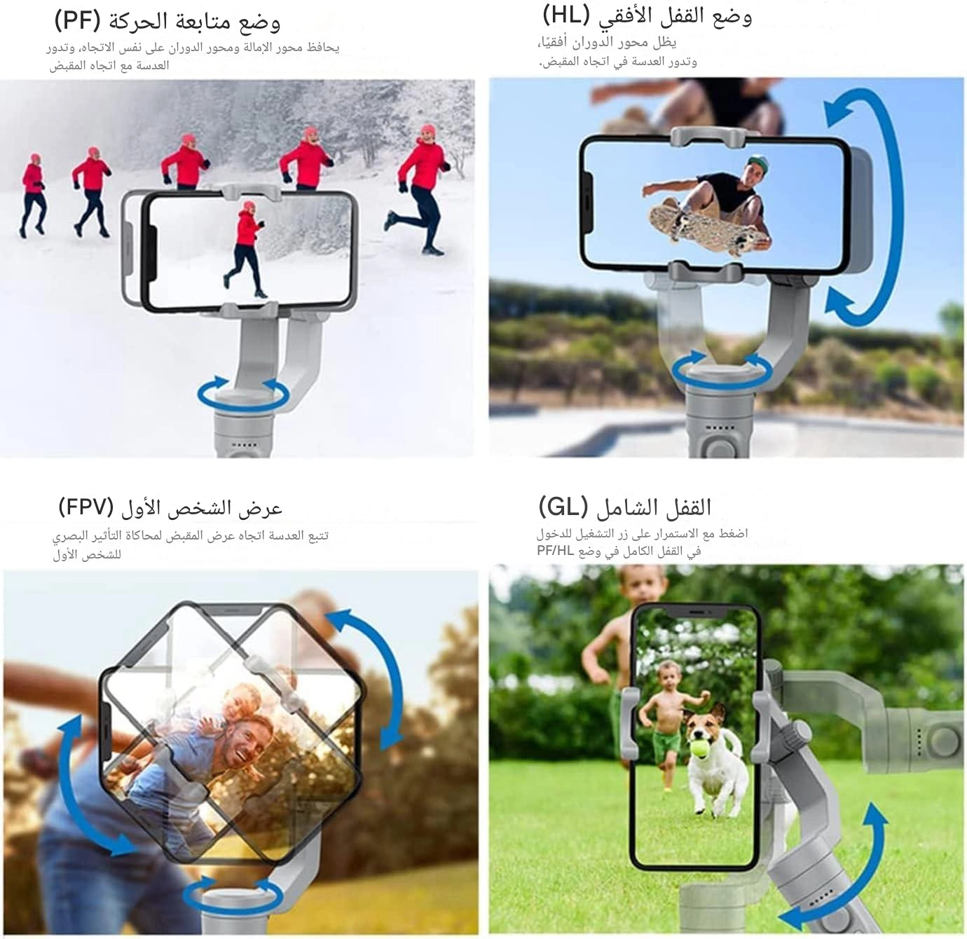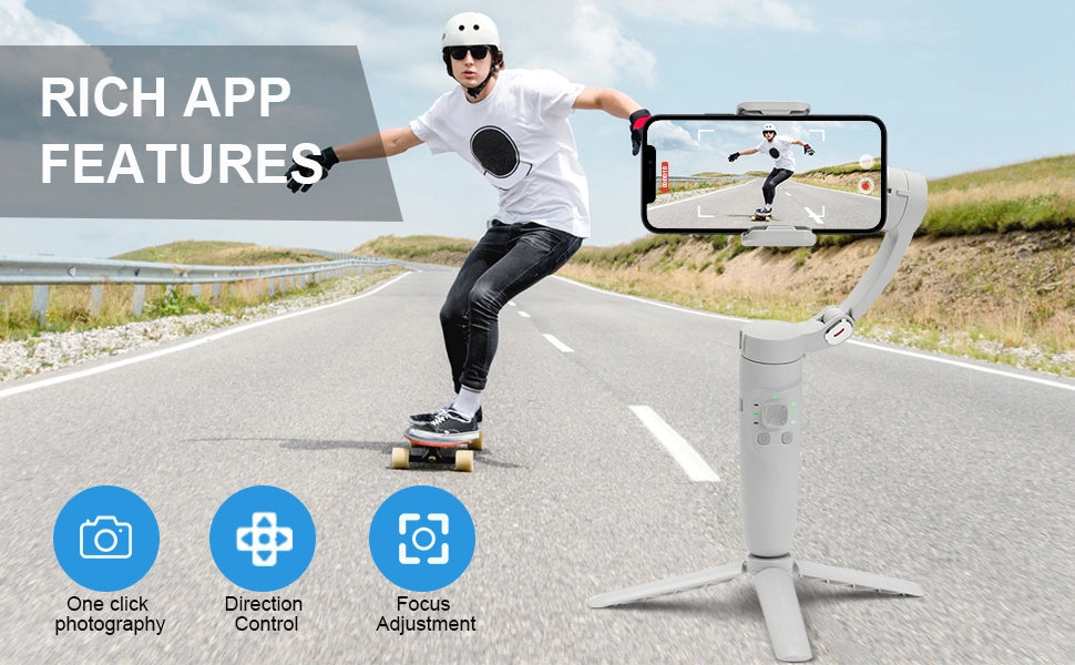 حوّل هاتفك إلى كاميرا سينمائية ، المثبّت الذكي الذي يمنحك لقطات سلسة وثابتة مهما كنت تتحرك! صُمّم خصيصًا لصنّاع 1المحتوى، الفلوغرز، المصورين، والناس اللي تحب تصور ذكرياتها بدون إهتزاز ولا تشوّش.