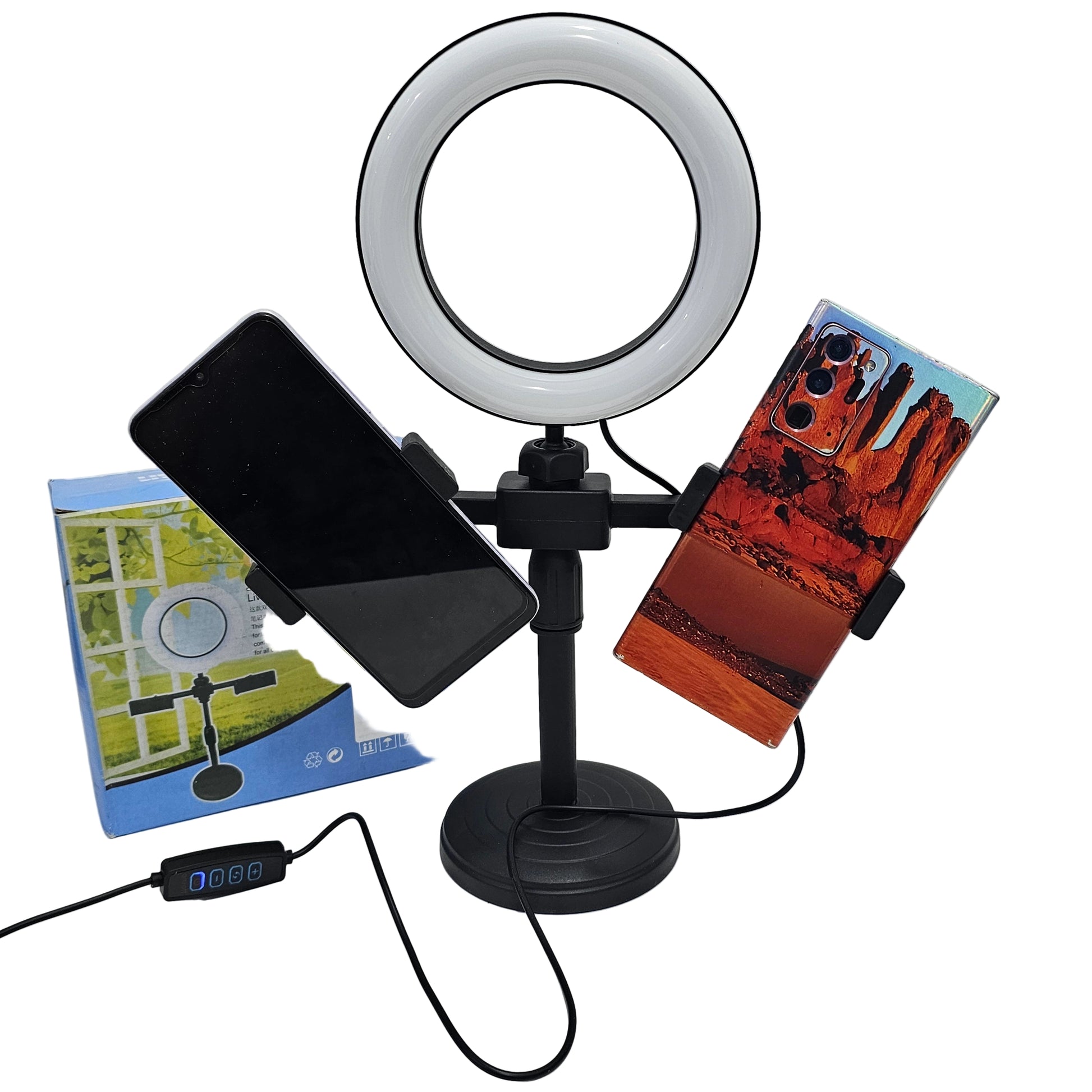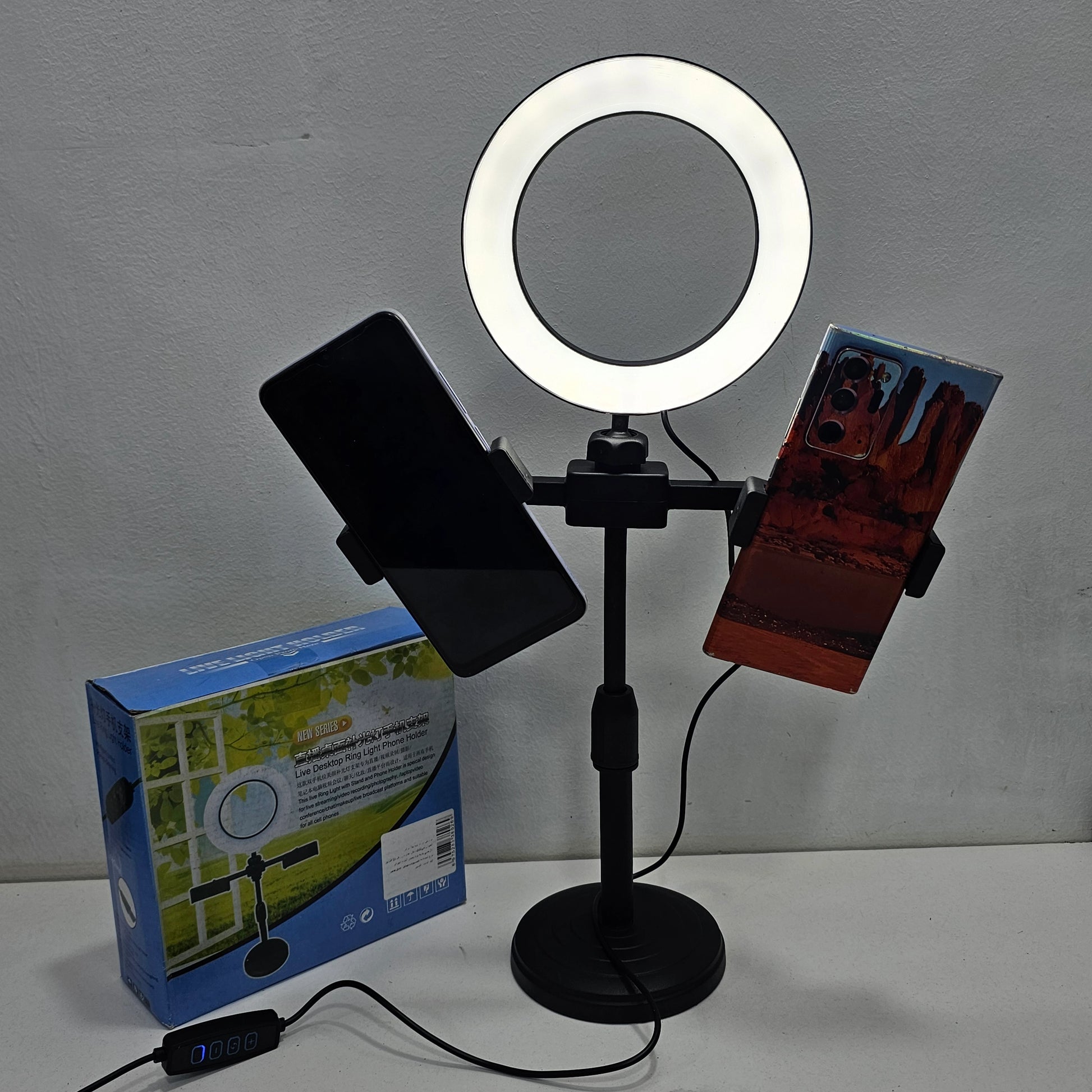 Ring light holder for 2 phones